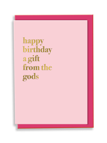 Happy Birthday A Gift From The Gods Greeting Card - Pink Typography
